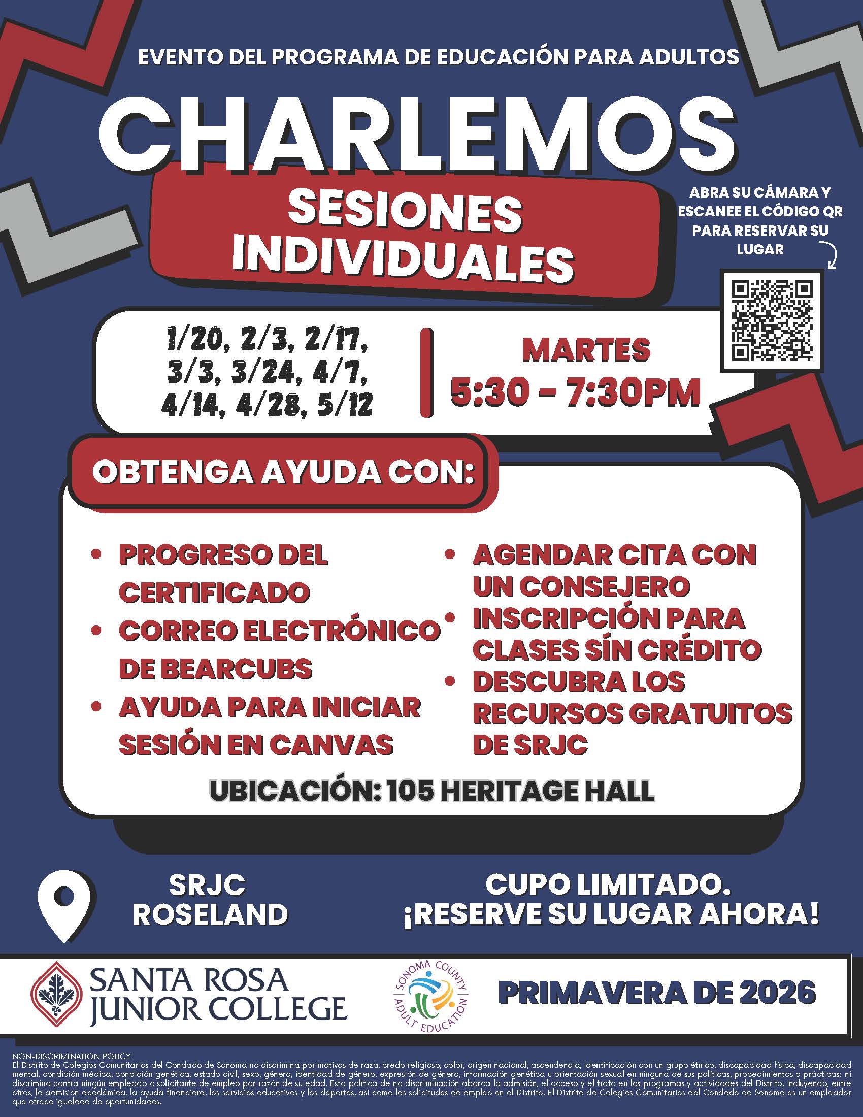 Reserve su lugar Office Hours Spanish - Roseland